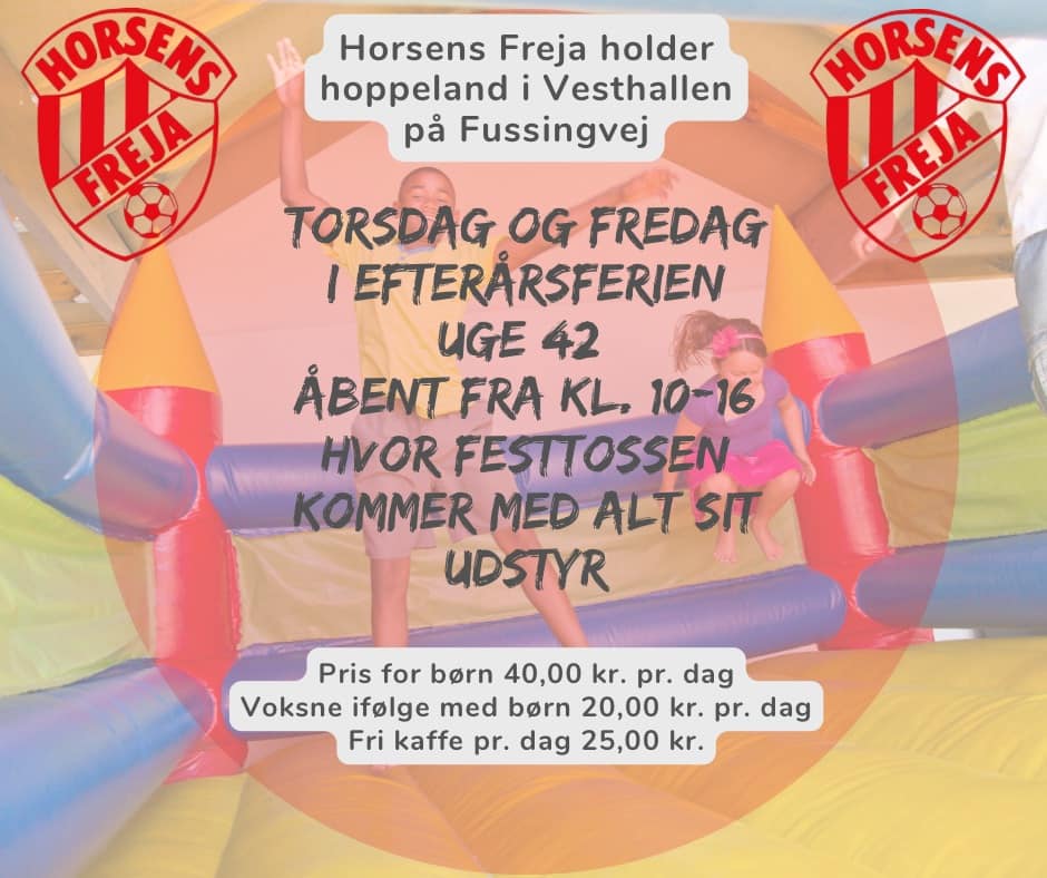 Horsens Freja er SÅ klar til at tage imod en masse hoppe glade børn og forældre torsdag og fredag i efterårsferien fra 10.00-16.00 i Vesthallen